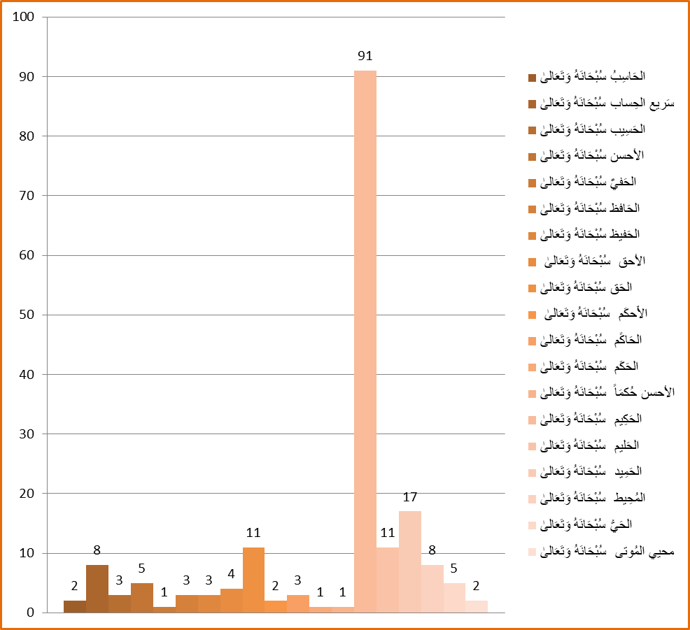 | م | الجذر | عدد الأسماء | الأسماء الحسنى | اجمالي التكرار في القران الكريم |