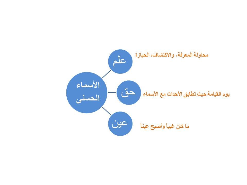 قد تعني علم بمعنى عرف، وترك أثر، وقد يتعلق العلم بالصفات والمعرفة بالذوات، لذلك العلم بصفة الشيء وحكمة بالكليات والمعرفة بالجزئيات وبالذات. لذلك فعلم الأسماء الحسنى الذي نحاول عن طريقة أن نتعلم ونفهم عن صفات الله وقدراته وسلطته المطلقة، وتوسيع مفاهيمنا فيها، واوجه تطبيقنا لها والعمل بها، وبعد تجنبنا لمعرفة ذات الله سبحانه وتعالى، نتعلم الجزئيات الخاصة بالأسماء الحسنى التي نقصد بها ما يدور حول الأسماء الحسنى من كلمات ومواقف ذكرت فيها الأسماء الحسنى من الأسماء كلها التي وردت في القرآن الكريم، والتي تعلمنا كيف يمكن أن نطبق هذا الاسم ونتعمق في فهمه، ويزيد إيماننا بالله سبحانه وتعالى، ويقيننا به يقيناً كاملاً.